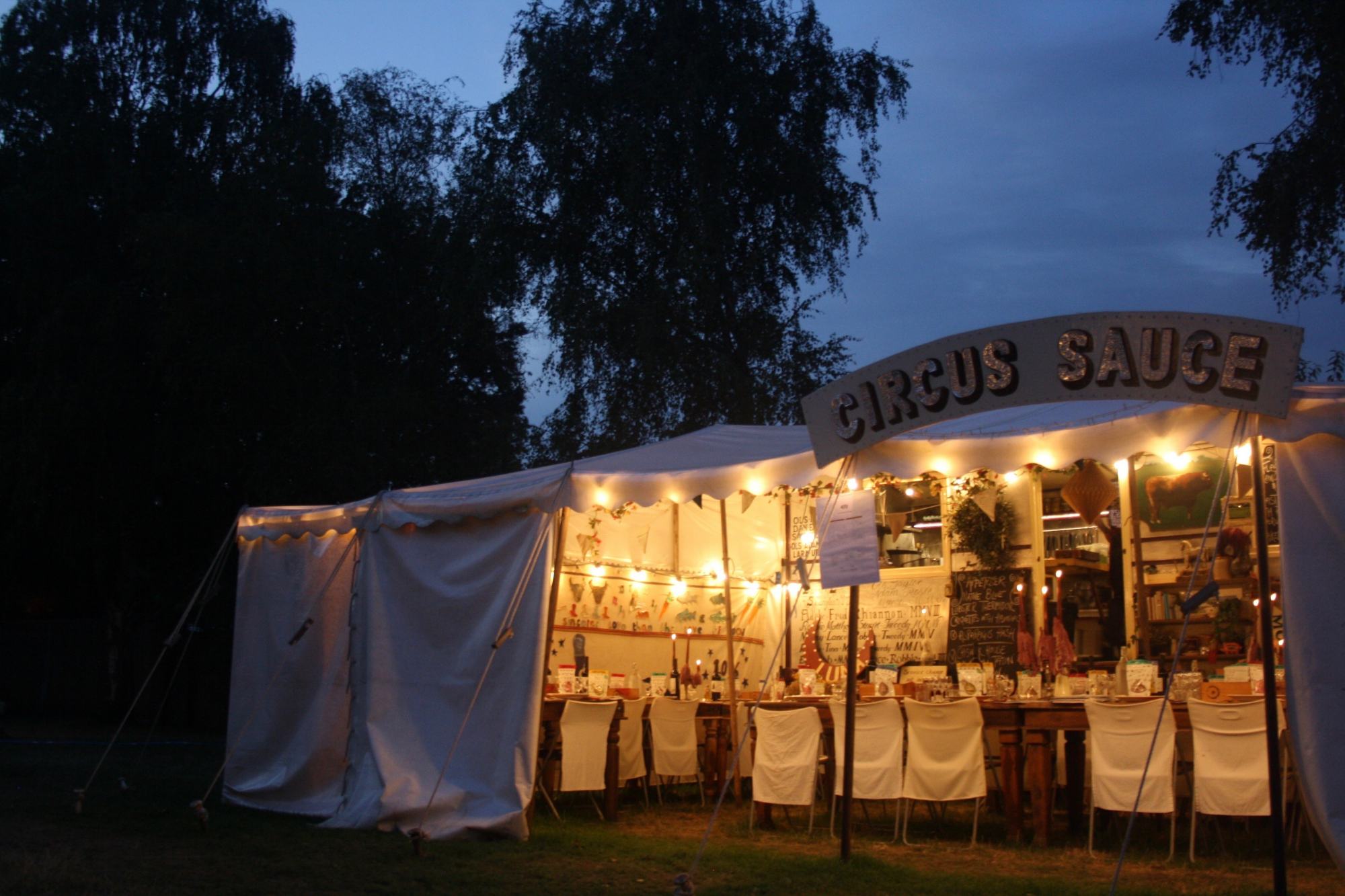 Circus Sauce is the unique 60-seat restaurant that follows the circus to each ground prepared by head chef Ols Halas. Started in 2003, it is the UK’s only travelling restaurant. The restaurant is housed in two magnificent showman's wagons with a wonderful awning lined with old tapestries and grand candle lit oak tables set up with Bridgewater crookery and mis-matched bone-handled cutlery.